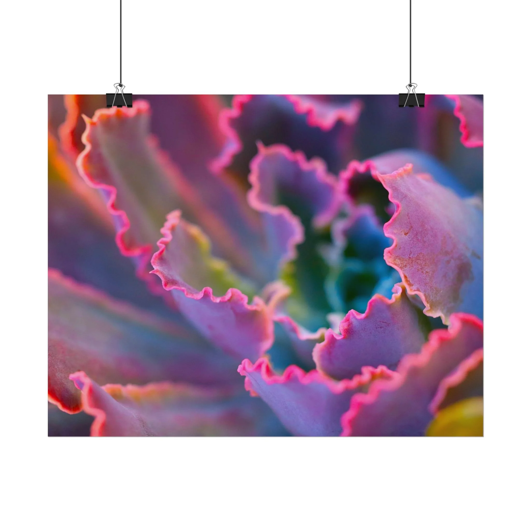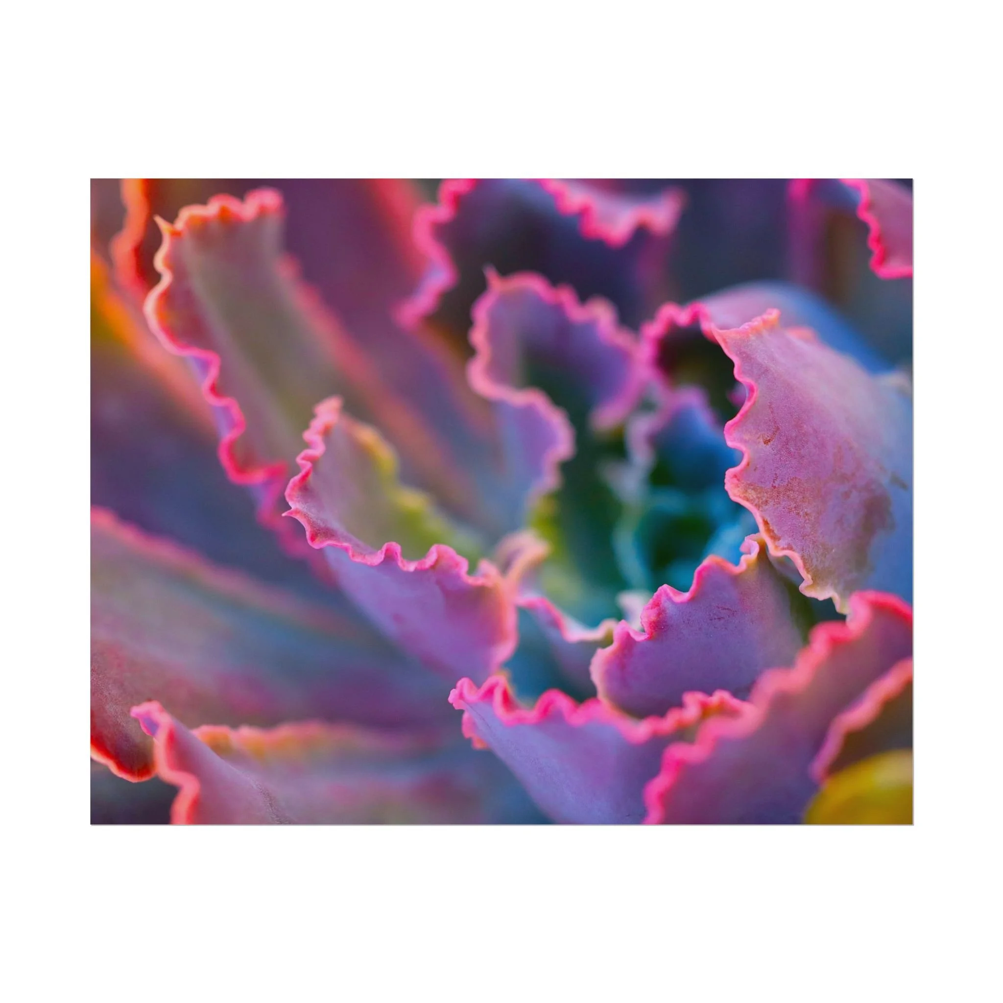 Transform your walls with a burst of botanical brilliance. This macro photograph captures the dramatic, frilled edges of a rare succulent in a stunning display of "nature-meets-neon." With its soft gradients and electric pink borders, this piece blurs the line between a living plant and a masterpiece of abstract digital art.